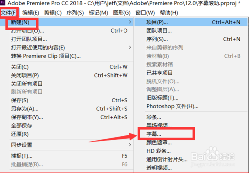 在編輯頁面,點(diǎn)擊 文件 -- 新建 -- 字幕