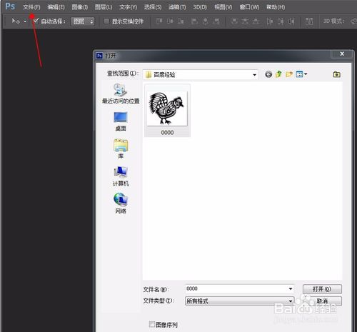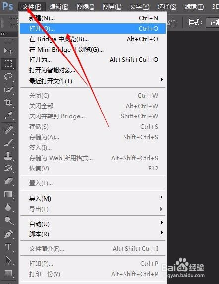 ps cs6怎么摳圖?1、打開(kāi)ps cs6,找到并點(diǎn)擊“文件”,在彈出的窗口中點(diǎn)擊“打開(kāi)”;