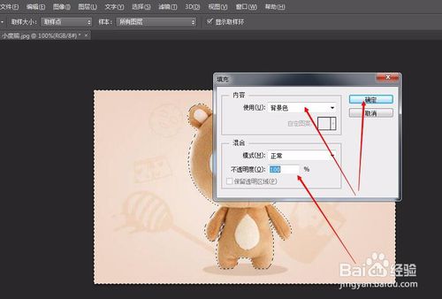 7、按Delete鍵,在彈出的窗口選擇填充顏色、透明度后點(diǎn)擊“確定”;