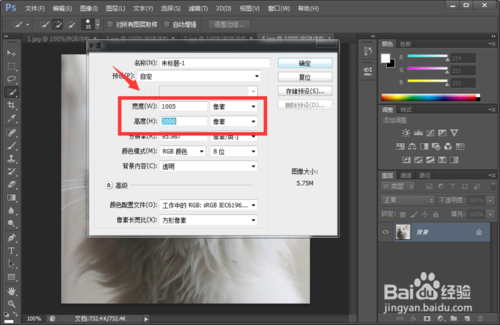 2、點(diǎn)擊文件-新建,彈出一個(gè)窗口,根據(jù)自己實(shí)際需要調(diào)整高度和寬度,再點(diǎn)擊確定。