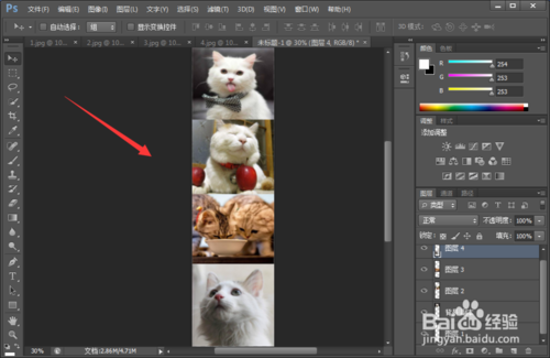 6、按照上述同樣的方法,分別將第2/3/4張圖片放置在新建畫(huà)布中,如下圖所示。