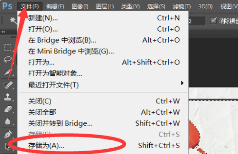 1、首先在打開(kāi)的photoshop cs6程序中點(diǎn)擊左上角的“文件”按鈕,并在打開(kāi)的下拉菜單中選擇“存儲(chǔ)為”。