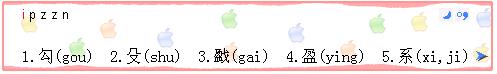 3. 按Tab鍵向后翻頁,直到“殳”字出現(xiàn)在提示板中,提示板中將會同時顯示該字的讀音;