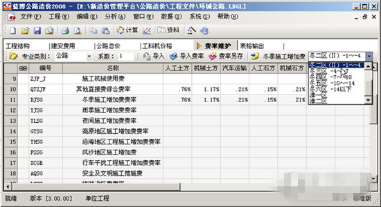 1)軟件結構清晰,分工程結構、建安費、公路造價、工料機價格、費率維護、報表6大部分。2)輸入靈活,項目節(jié)輸入及定額輸入在一個表中,結構清晰、便于核對。