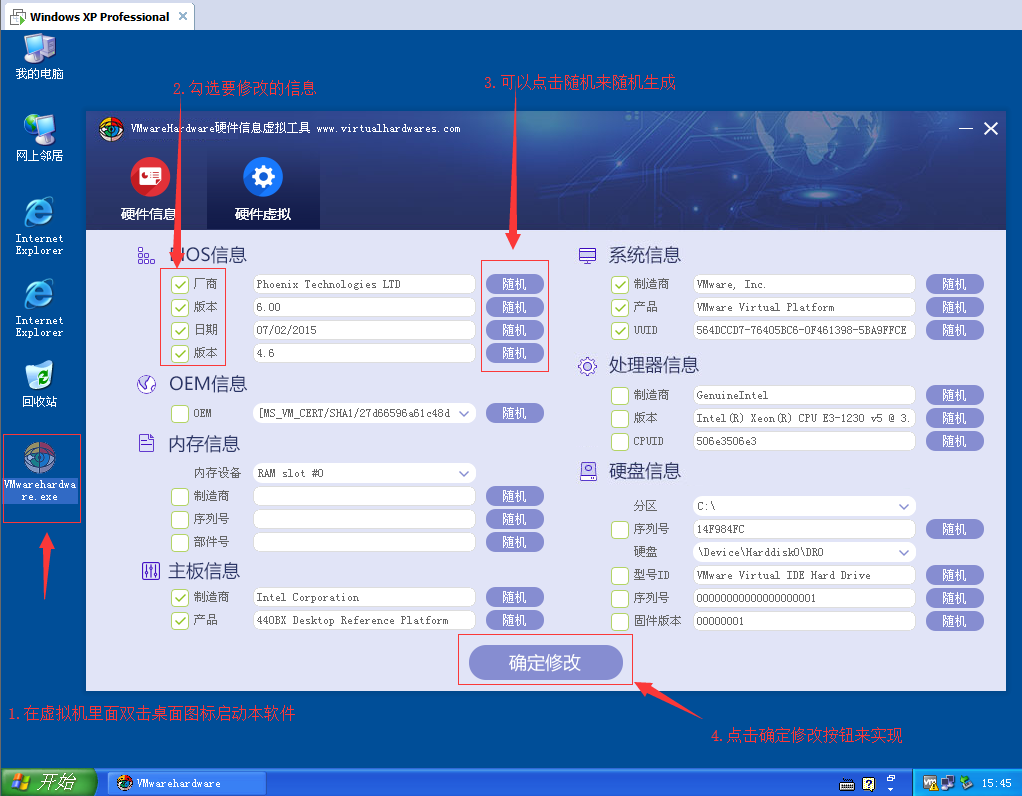 VMware Hardwares(硬件信息虛擬工具)是一款在VMware Workstation Pro虛擬機(jī)里面運(yùn)行的軟件。用戶可以通過該軟件修改VMware Workstation Pro虛擬機(jī)里面的xp-win10系統(tǒng)的硬件信息。