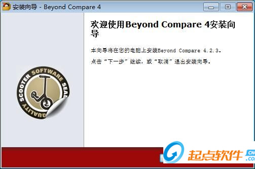 我們進(jìn)入到Beyond Compare安裝向?qū)?。這個向?qū)⒅敢阃瓿葿eyond Compare的安裝進(jìn)程。在開始安裝之前,建議先關(guān)閉其他所有應(yīng)用程序。這將允許“安裝程序”更新指定的系統(tǒng)文件,而不需要重新啟動你的計算機。單擊 [下一步] 繼續(xù);