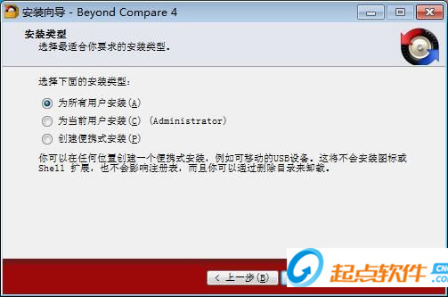 這一步需要選擇Beyond Compare的安裝類型,需要選擇是為所有用戶安裝,為當(dāng)前用戶安裝或是創(chuàng)建便攜式安裝。極速小編選擇了為所有用戶安裝,點擊[下一步]繼續(xù)安裝;