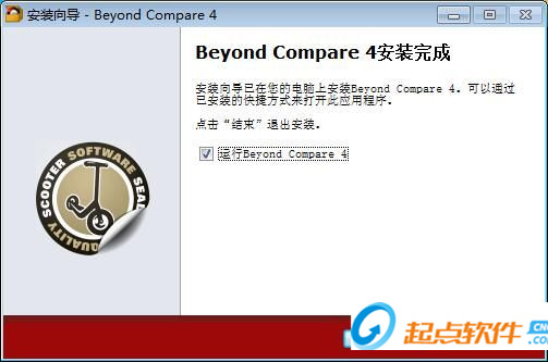 安裝完成,安裝程序已經(jīng)成功在您的電腦上安裝了Beyond Compare。這時候安裝向?qū)崾綛eyond Compare已經(jīng)安裝完成,點擊[完成]就可以退出安裝向?qū)Я?。這里有一個勾選項,勾選后會在退出安裝向?qū)У耐瑫r運行Beyond Compare,如果不需要馬上運行,取消勾選即可。
