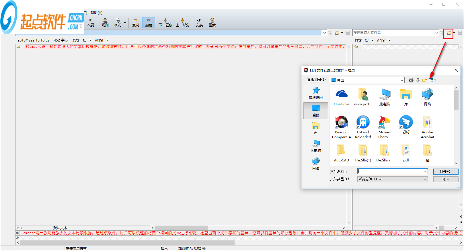 2、我們點擊功能欄上的【文本比較】按鈕,并進(jìn)入相應(yīng)的窗口界面。