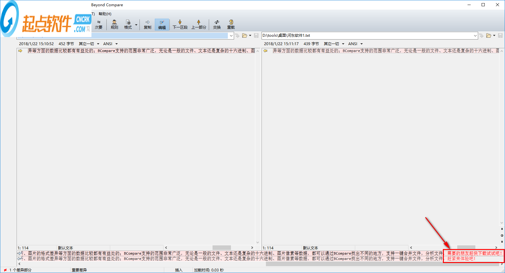 3、如圖,我們已經(jīng)進(jìn)入了如下所示的文本比較窗口。