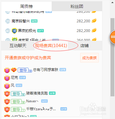 4、貴賓(貴賓越多體現(xiàn)直播實(shí)力強(qiáng)大)