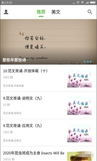 雅文英語app是一個英語美文欣賞平臺,精選美文,詩歌朗讀,智慧背囊,溫馨夜讀心靈履痕,生命感悟等等。還有許多優(yōu)秀的英語美文供讀者欣賞。