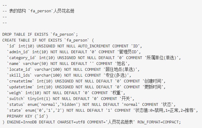 FastAdmin的數(shù)據(jù)庫(kù)安裝文件保存在 application/admin/command/Install/fastadmin.sql
