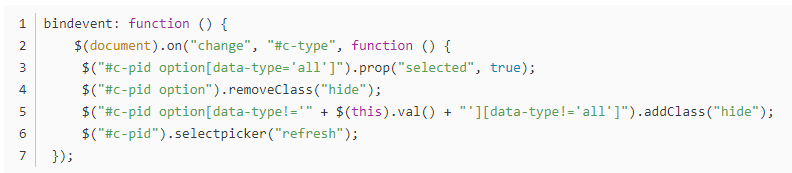 函數(shù)第一部分是綁定類別變動(dòng)的事件。