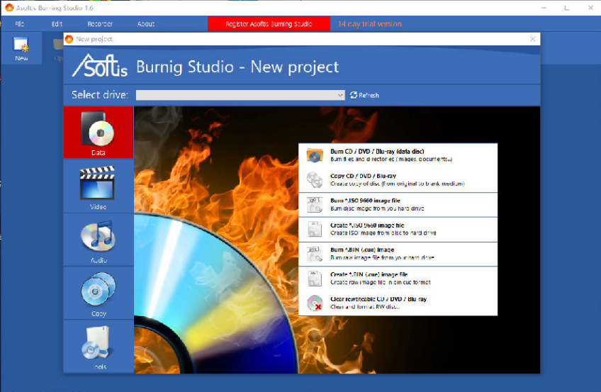 Asoftis Burning Studio是一款可以刻錄視頻的軟件,你可以將自己的視頻刻錄到DVD使用,可以將音頻刻錄到CD使用,內(nèi)置詳細(xì)的引導(dǎo)步驟,啟動(dòng)軟件就可以看到新項(xiàng)目設(shè)計(jì)的方案,你可以在軟件的功能界面選擇刻錄類型,支持?jǐn)?shù)據(jù)、視頻、音頻、復(fù)制等四個(gè)主要的光盤操作功能,如果你點(diǎn)擊data就是設(shè)計(jì)設(shè)局光盤,如果你點(diǎn)擊video就是建立視頻光盤,另外這款A(yù)softis Burning Studio軟件內(nèi)置注冊程序,可以輕松對軟件授權(quán)!