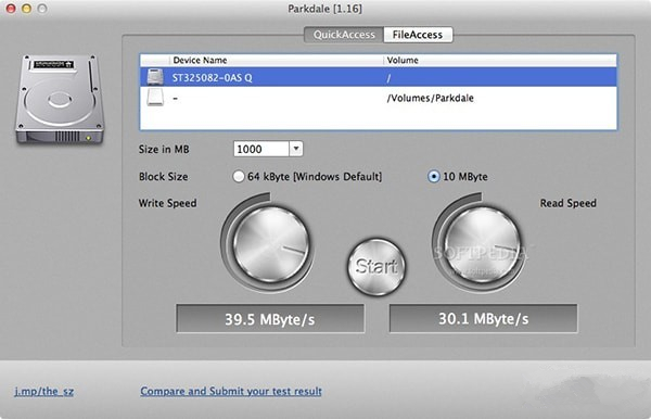 啟動Parkdale Mac版后可以執(zhí)行的速度允許您通過使用4 KB塊以及32種不同的并發(fā)步驟查看順序讀寫訪問速度和隨機(jī)訪問速度。此外,您可以在benchmark頁面中比較和提交基準(zhǔn)測試結(jié)果。更重要的是,測試數(shù)據(jù)在文件系統(tǒng)的幫助下被寫入到一個普通文件中,因此您可以確保獲得最佳的速度。