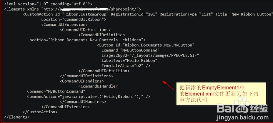 5.把新添的EmptyElement1中的Element.xml文件更新為如下內(nèi)容方法代碼