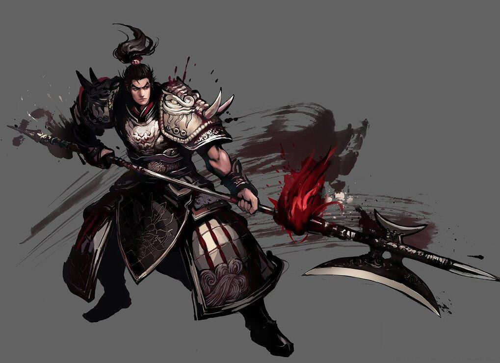 從游戲中武將的立繪可看出,在三國(guó)英雄造型的設(shè)計(jì)上,更貼近于《三國(guó)演義》中的模樣。人設(shè)十分寫實(shí),以呂布為例,畫面中的呂布手持方天畫戟,戟上紅纓帶出一尾墨痕。使得整張立繪更為動(dòng)感,彰顯出呂布作為頂尖武將的霸氣。