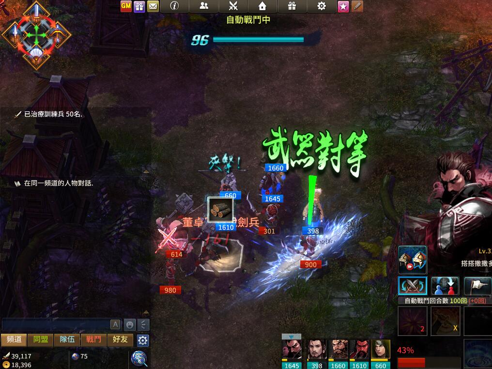 【武將云集自由對(duì)戰(zhàn)】《胸懷三國(guó)》不僅還原了三國(guó)歷史還結(jié)合了獨(dú)特的「劇情動(dòng)畫語(yǔ)音」與超過1000 篇的豐富劇情,深刻描繪三國(guó)英雄的史詩(shī)故事,所有武將唯我所用,讓玩家感受最真實(shí)的戰(zhàn)爭(zhēng)思維,彷佛置身于經(jīng)典戰(zhàn)役中,感受氣勢(shì)磅礡的完美戰(zhàn)役。【調(diào)兵布陣震撼攻城】軍營(yíng)戰(zhàn)、掠奪戰(zhàn)、國(guó)戰(zhàn),施展武將調(diào)遣、戰(zhàn)畧布局的雄才大略!真實(shí)還原還原三國(guó)史詩(shī)戰(zhàn)役!《胸懷三國(guó)》中的副本挑戰(zhàn),讓玩家透過組隊(duì)更有效率的完成任務(wù)外,也可以與好友一同享受戰(zhàn)斗樂趣,還可獲得額外的組隊(duì)點(diǎn)數(shù)獎(jiǎng)勵(lì)。玩家可組隊(duì)參加3對(duì)3軍營(yíng)戰(zhàn)副本,玩家在限定的時(shí)間內(nèi),運(yùn)用戰(zhàn)術(shù)策略和隊(duì)友一起沖鋒陷陣,突破敵方大本戰(zhàn)。