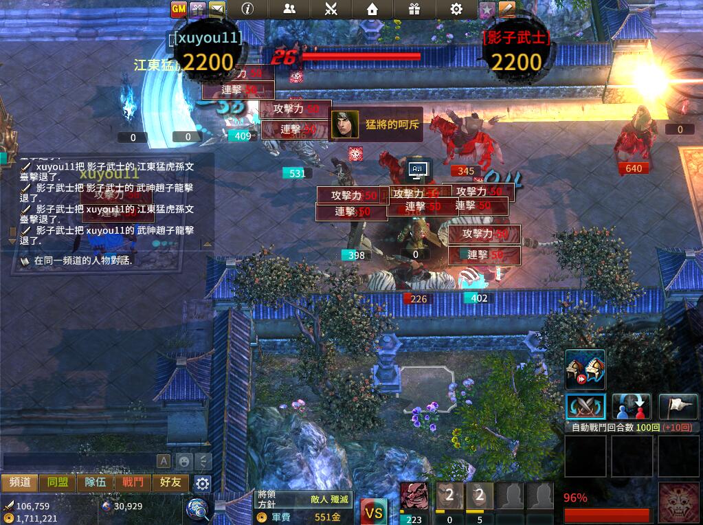 對(duì)戰(zhàn)雙方開戰(zhàn)時(shí)都會(huì)顯示相同的數(shù)字作為血量,開始自動(dòng)戰(zhàn)斗,玩家實(shí)時(shí)通過升級(jí)將領(lǐng)的策略技能等級(jí)來增強(qiáng)將領(lǐng),并獲得勝利,當(dāng)一方對(duì)應(yīng)血量的數(shù)字歸0即表示戰(zhàn)斗結(jié)束,另一方勝利。