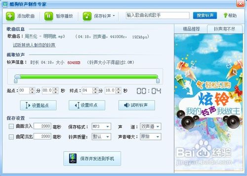 我們還可以進(jìn)行淡入淡出設(shè)置、鈴聲質(zhì)量設(shè)置等,以保證截取的片段更加適合我們的需要