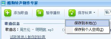 全部完成后,點(diǎn)擊上面的“保存鈴聲”→“保存到本地”,即可將截取的片段保存。