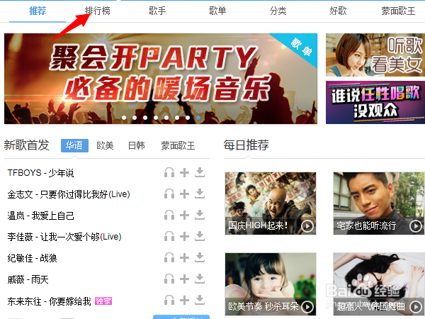 如果你不知道要下載哪些歌曲,那么小白建議大家選擇排行榜里的歌曲,畢竟那里是熱門的地方。