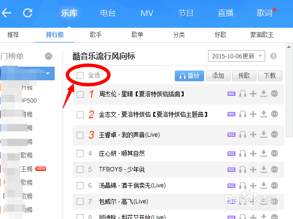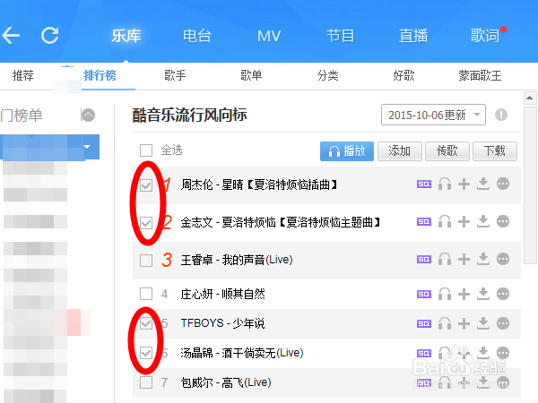 在你想要下載的歌曲前面勾上對(duì)號(hào)。