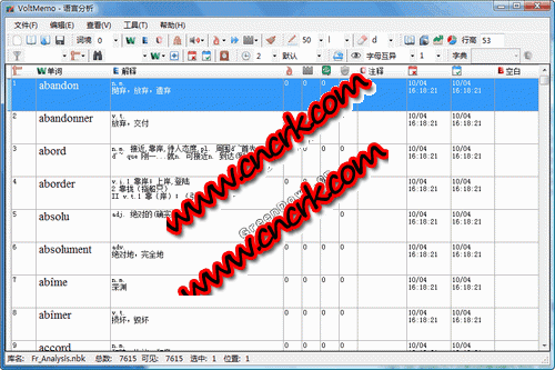voltmemo法語分析能夠把詞庫中所有的易錯詞和衍生詞發(fā)掘出來。還能分析單詞的詞根。是最好的詞匯分析工具。默認已經(jīng)在篩選欄中提供了輔助的幫助項。直接使用就可以了。