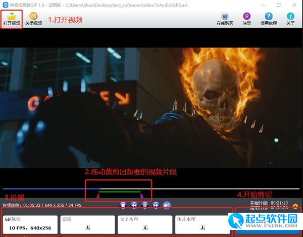 2、拖動(dòng)“開(kāi)始”按鈕,確定視頻的開(kāi)始時(shí)間。