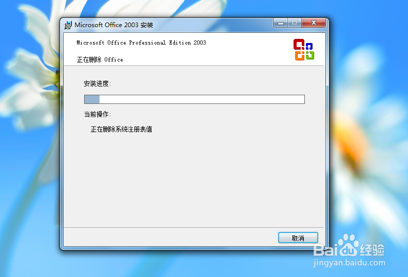 點(diǎn)擊后就會(huì)提示“是否確認(rèn)從本機(jī)上刪除office 2003”,我們點(diǎn)擊是。