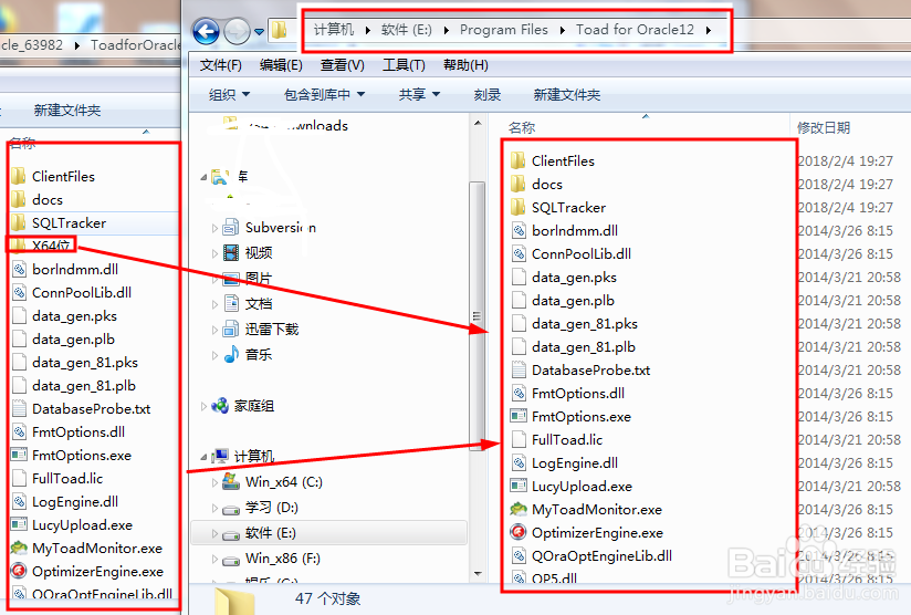 連接oracle數(shù)據(jù)庫解壓縮安裝包后,將文件復(fù)制到自己新建的文件夾(后續(xù)稱為安裝目錄)下,如果是64位就將64位文件夾內(nèi)的內(nèi)容復(fù)制替換掉安裝目錄中的內(nèi)容即可