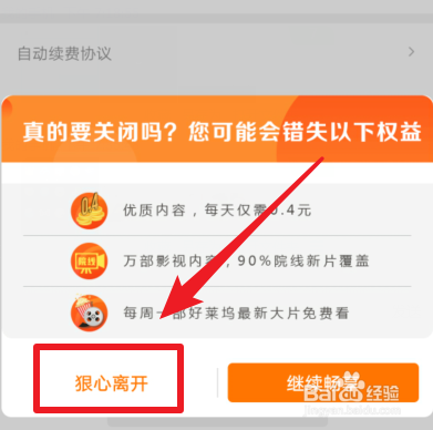 點擊后,頁面會彈出挽留的對話框,我們點擊狠心拒絕,即可關(guān)閉華為視頻會員的自動續(xù)費功能。