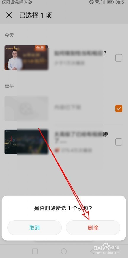 在打開的編輯頁面中,我們勾選要刪除的視頻,然后點擊下面的“刪除”按鈕。