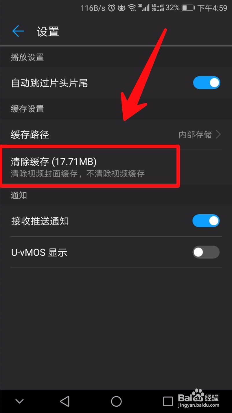 點擊“清除緩存”,這里的緩存不是視頻緩存,而是視頻封面緩存。