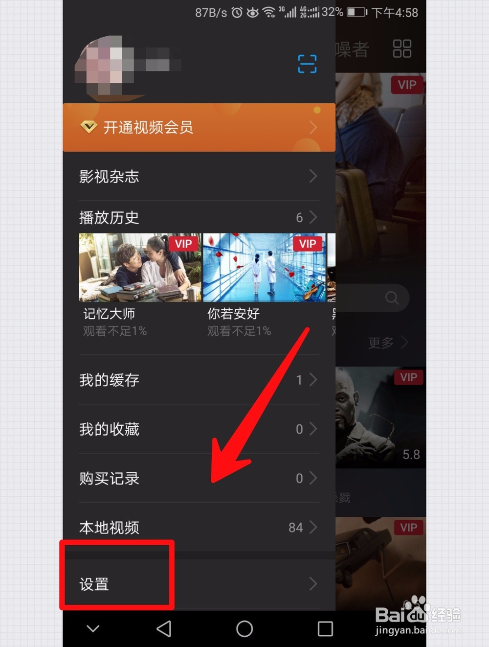 然后點擊“設(shè)置”,打開設(shè)置界面;這里可以對視頻封面緩存、緩存路徑、跳過片頭片尾進行設(shè)置
