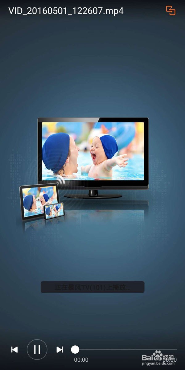 系統(tǒng)自動搜索局域網(wǎng)內(nèi)的智能設(shè)備,找到需要投屏的電視上,點擊連接,本文以暴風(fēng)電視為例。