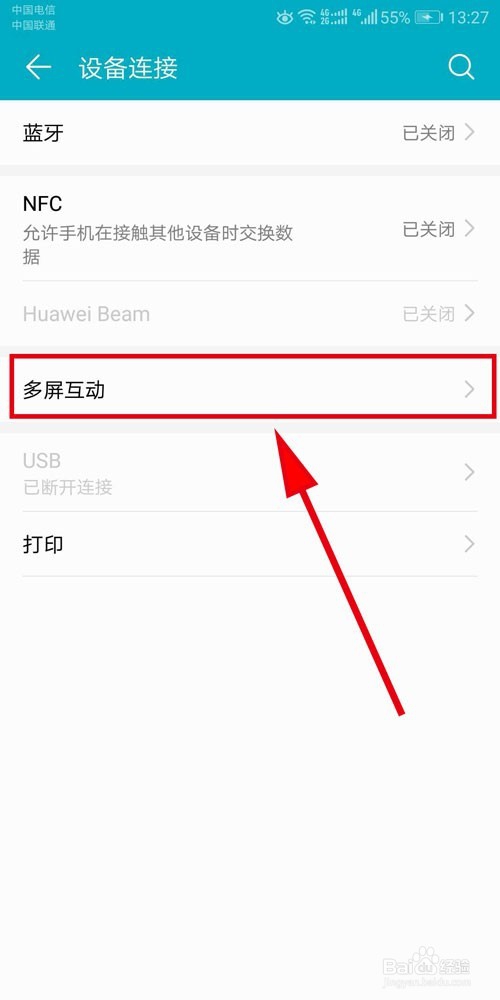 在“設(shè)備連接”里找到“多屏互動”,打開它