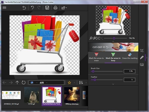 您也可以使用“保留”光標(biāo)來保留重要細(xì)節(jié)并獲得成功剪輯!即使細(xì)微的細(xì)節(jié),如頭發(fā)可以以驚人的精度去除。然后只需將剪切后的對象粘貼到任何背景上即可進(jìn)行拼貼或蒙太奇 – 只需輕輕一按即可!