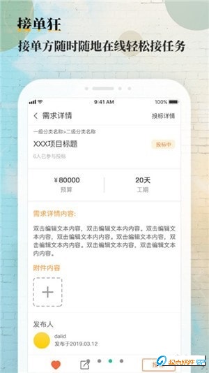 2、接單方隨時(shí)隨地在線輕松接任務(wù)。