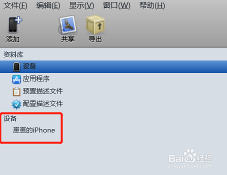 2、打開iPhone實(shí)用工具,進(jìn)入后左邊會(huì)顯示自己的設(shè)備名稱,點(diǎn)擊進(jìn)去在配置描述文件那里進(jìn)行刪除即可。