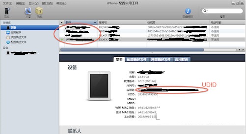 這里我們可以看到所有的設(shè)備,以及本設(shè)備的UDID資料。