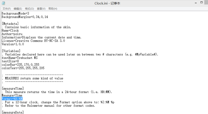 2、在彈出的筆記本文件中找到【Format=%#H:%M】。