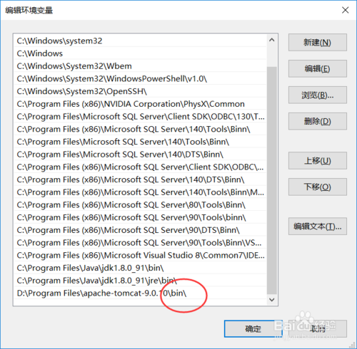 Path:D:\tomcat-9.0.7\apache-tomcat-9.0.7\bin(在后面加上)