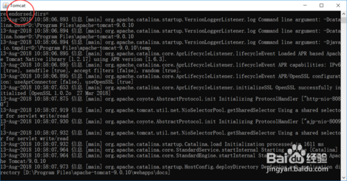 然后進(jìn)去D:\tomcat-9.0.7\apache-tomcat-9.0.7\bin下,點擊starup.bat,出現(xiàn)這個畫面就算配置成功了。