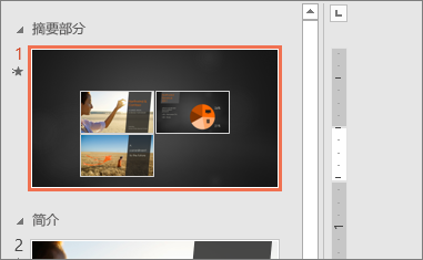 若要使演示文稿更具動態(tài)性并允許在其中進行自定義導(dǎo)航,可嘗試使用 PowerPoint 的縮放定位功能。在 PowerPoint 中創(chuàng)建縮放定位時,可于演示時按之前確定的順序在演示文稿的特定幻燈片、節(jié)和部分之間來回跳轉(zhuǎn),并且從一張幻燈片到另一張幻燈片的移動使采用縮放效果。