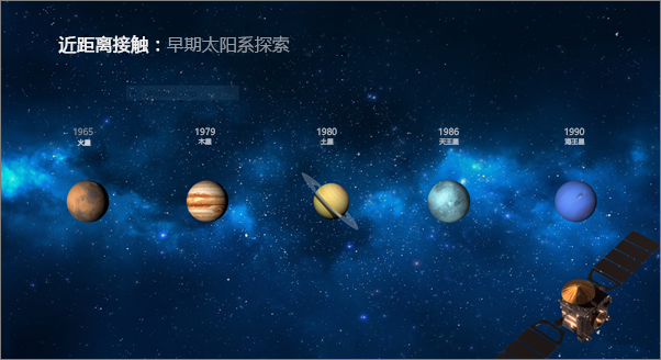這是具有相同對象且應(yīng)用了平滑切換的第二張幻燈片。行星移動,而無需對它們應(yīng)用單獨的動作路徑或動畫。