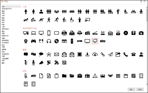 3、選擇一個圖標(biāo),然后單擊右下方的“插入”??稍趩螕簟安迦搿敝皢螕舾鱾€圖標(biāo),同時插入多個圖標(biāo)。
