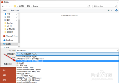 保存類型這選擇PowerPoint 97-2003演示文稿。