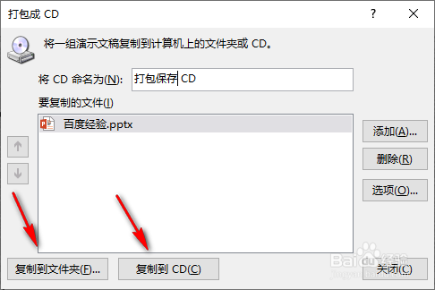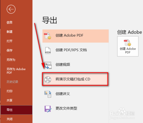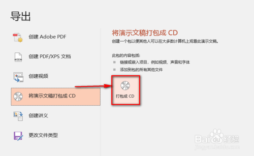 點擊“將演示文稿打包成CD”。